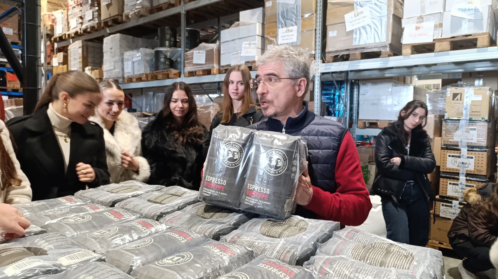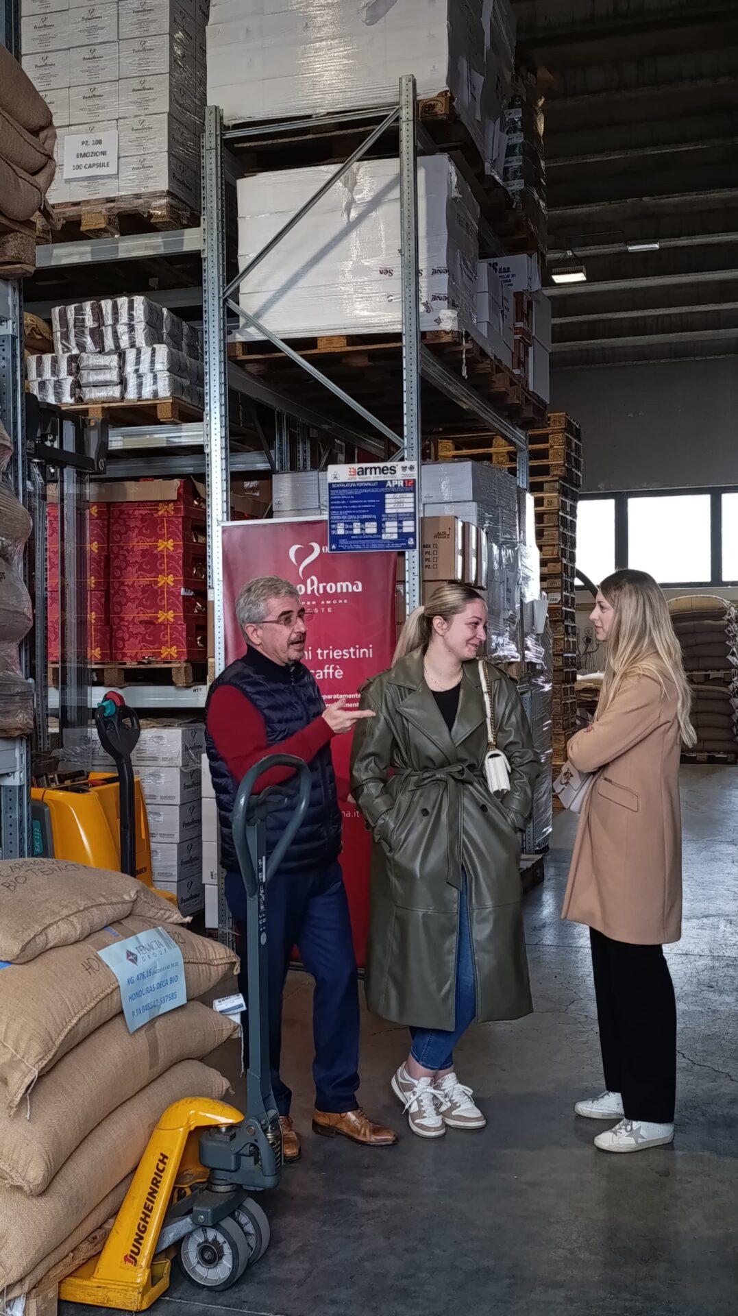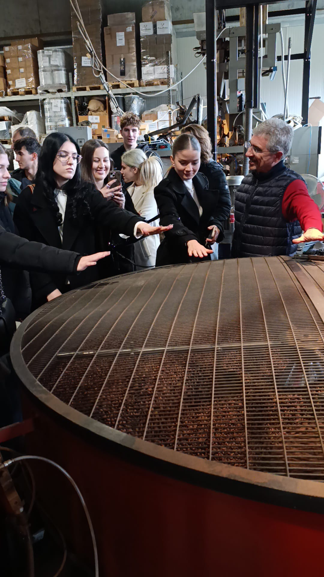 Po ogledu je sledil prosti čas, namenjen aktivnosti ActionBound, malici in druženju. 🍂 Odpravili smo se tudi v tri pražarne. Nekateri smo obiskali prašarno Prima Aroma, kjer nam je prijazni gospod Fabrizio na zelo zanimiv način predstavil delovanje pražarne in postopek praženja kave. ☕🔥 Skupaj smo spili espresso in doživeli res lep ter poučen obisk.